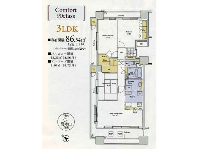 | 詳細間取 | 3LDK (和6.03帖×1、洋8.13帖×1、洋7.13帖×1、LDK12.73帖) | ||