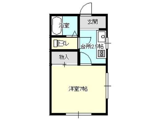| 詳細間取 | 1K (洋7帖×1、キッチン2.5帖) | ||
